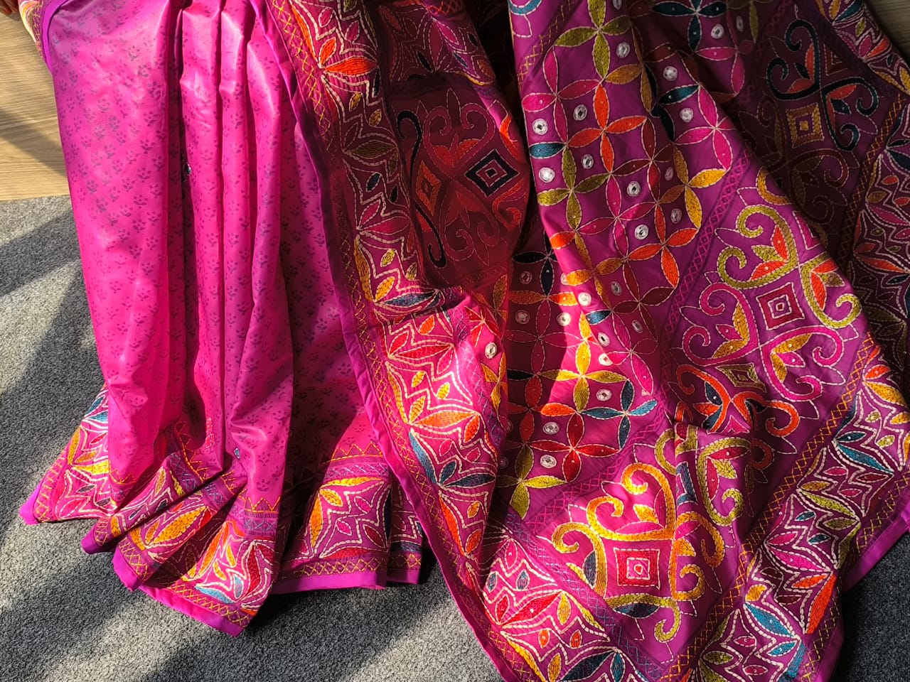 • Craftsmanship: Hand-stitched with sequence and tassel work